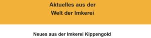 Kippengold bildet die Heimat der ImkerInnen Martina und Markus. Ziel war und ist: die Bienenhaltung als Hobby zu betreiben. Ursächlich geht dieser Antrieb auf Martina zurück. Das in der Bienenhaltung anfallende Abfallprodukt Honig kann natürlich erworben werden.